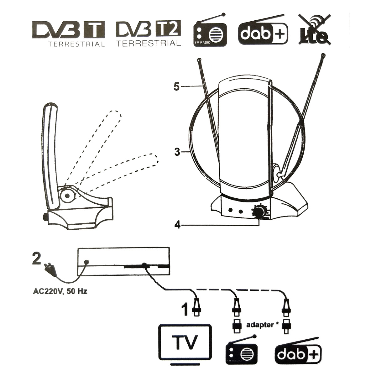 Anténa izbová VHF/UHF/FM/DAB+ Iskra G-2235-06 LTE800