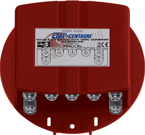 DiSEqC 2.0 prepínač 2+T/1 Option, vodeodolný Prepínač slúži na pripojenie dvoch single LNB a terestriálnej antény k jednému prijímaču. Vstupy prepínača sú ovládané povelmi "Option" a sú priebežné pre 22 kHz a DiSEqC povely.