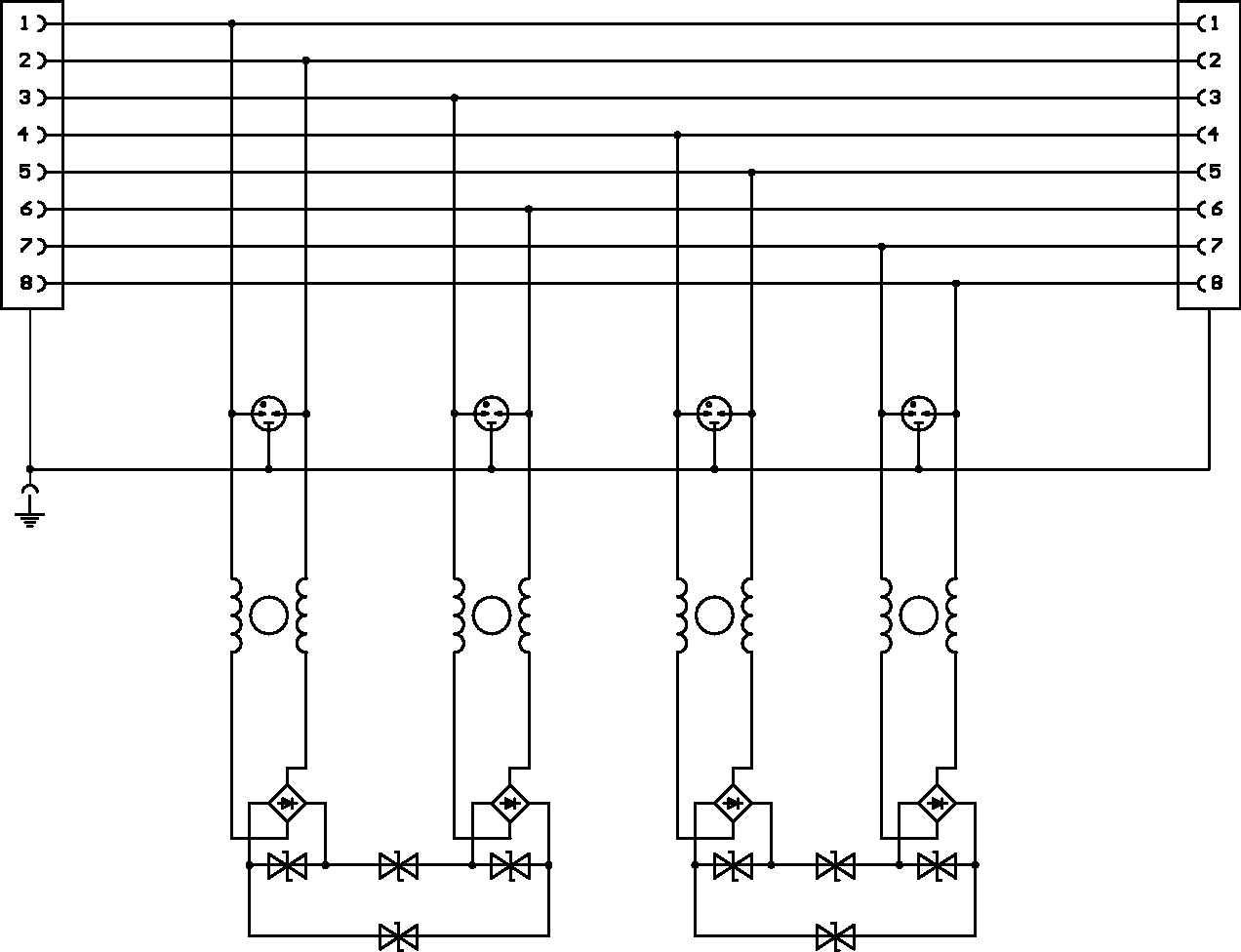 na rozhraní zón LPZ 0 a LPZ 1 a vyšších, k ochrane linky Ethernet Cat. 6 s PoE (napájanie po linke Ethernet) režimu A, B pred pulzným prepätím.