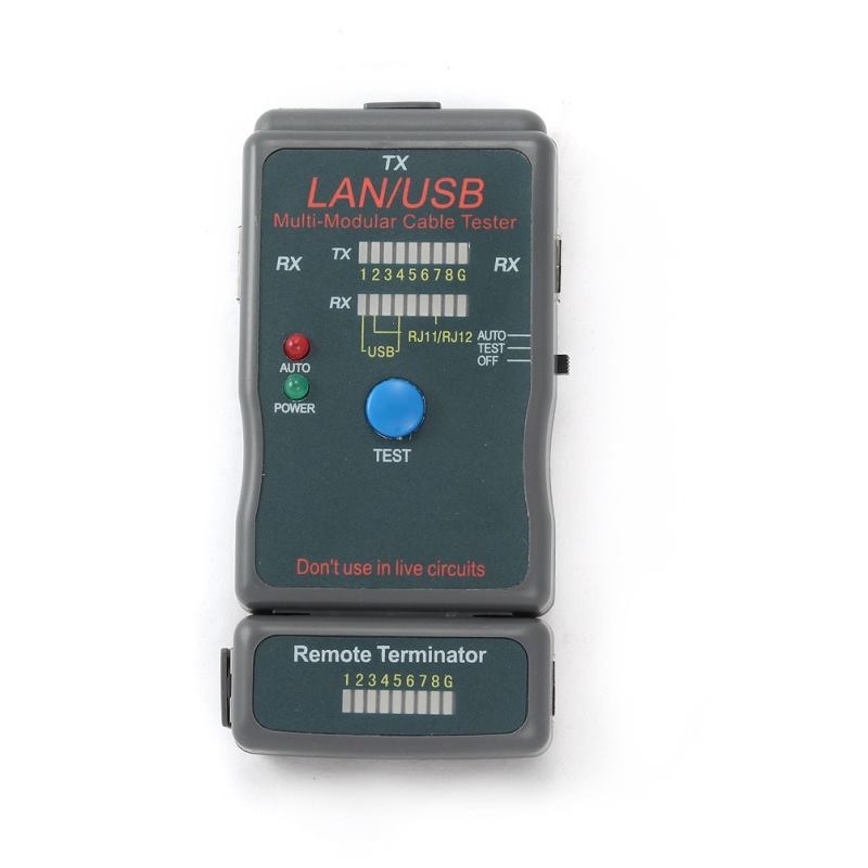 Sieťový tester pre UTP, STP a USB káble. Zariadenie slúži na zistenie, či kábel nie je prerušený alebo skratovaný.