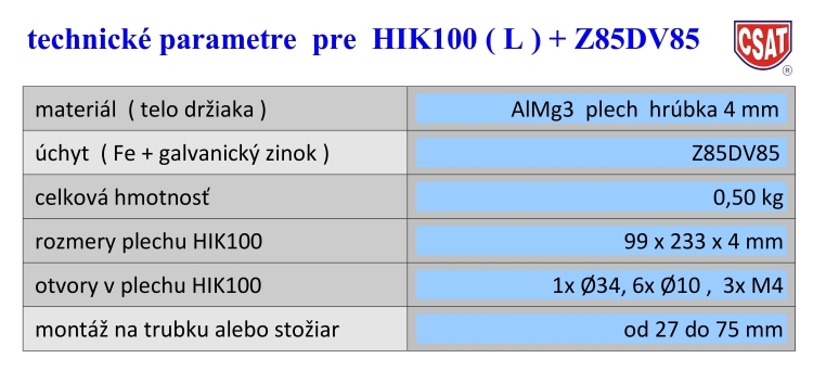 Možnosť uchytenia konzoly na stožiar alebo trubku (priemer od 27 do 75 mm), viď nižšie uvedené súvisiace produkty (nie sú súčasťou)