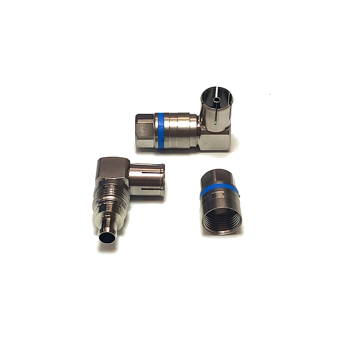 Kvalitný samoinštalačný IEC konektor uhlový - samica od firmy Cavel, vhodný na koax. káble s označením RG6 napr. Cavel SAT703B, KF114, DG113 atď..