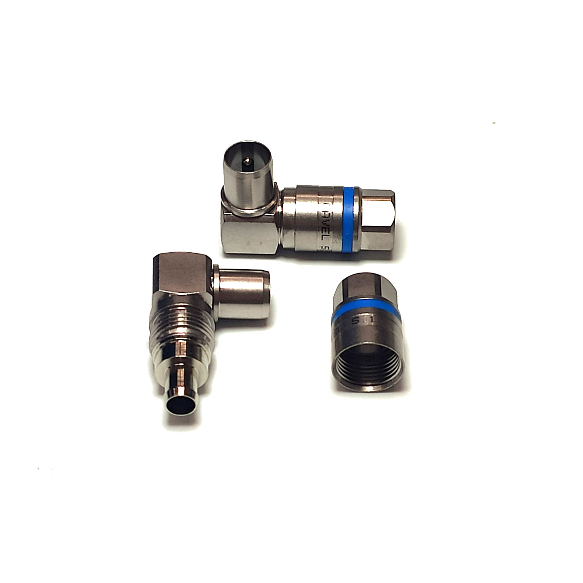 Kvalitný samoinštalačný IEC konektor uhlový - samec od firmy Cavel, vhodný na koax. káble s označením RG6 napr. Cavel SAT703B, KF 114, DG113 atď..
