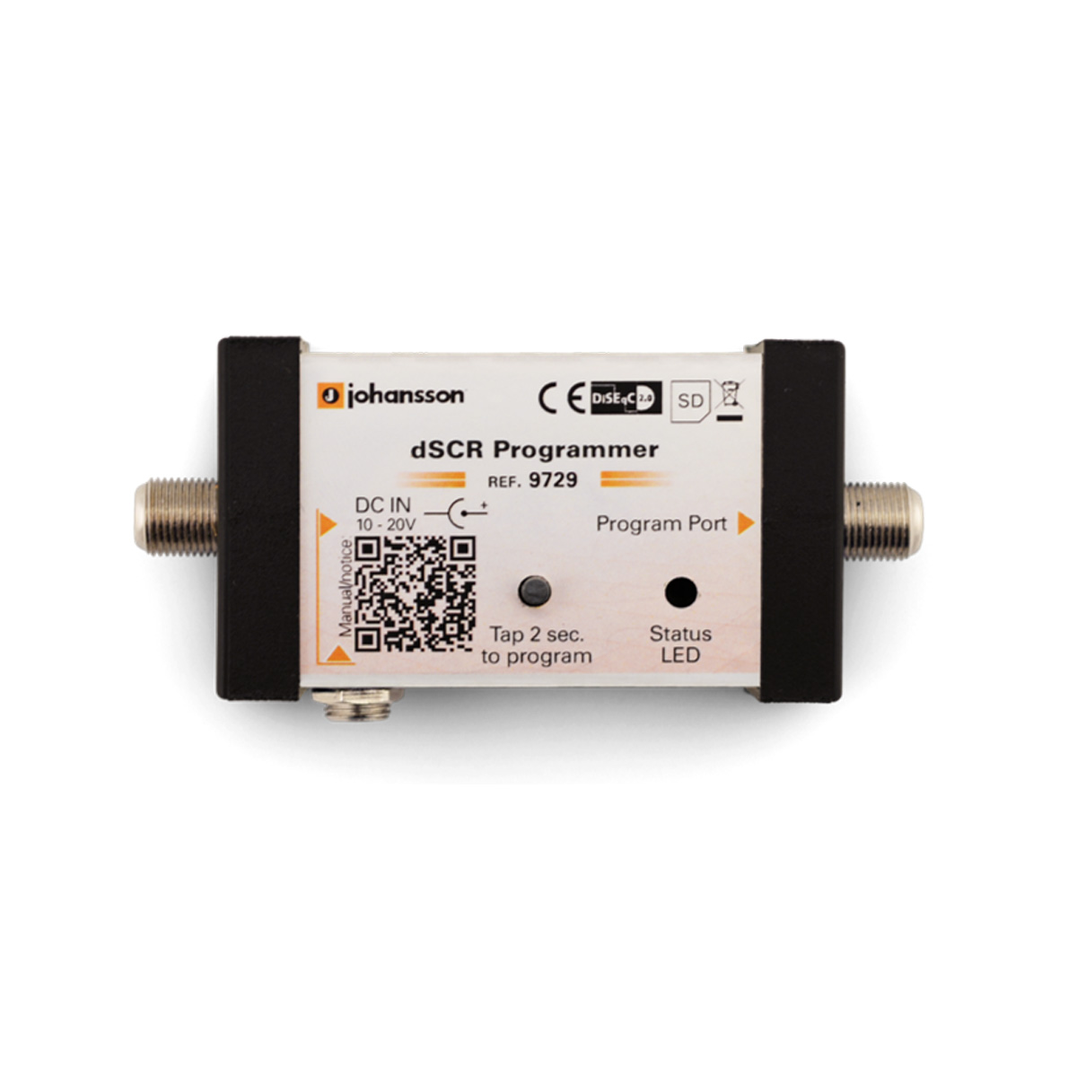 Programátor slúži na programovanie dSCR LNB Johansson 9721 bez nutnosti chodenia na strechu. Programovanie LNB prebieha z interiéru, cez koaxiálny kábel.