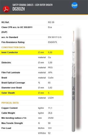 Koaxiálny kábel CAVEL DG80ZH LSZH 5mm ClassA(Dca,s2,d2,a1) 150m