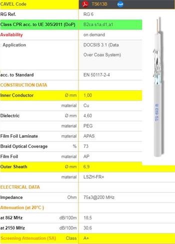 Koaxiálny kábel CAVEL TS613B, LSZH, 6.9mm, Class A+(B2ca,s1a,d1,a1), 100m balenie