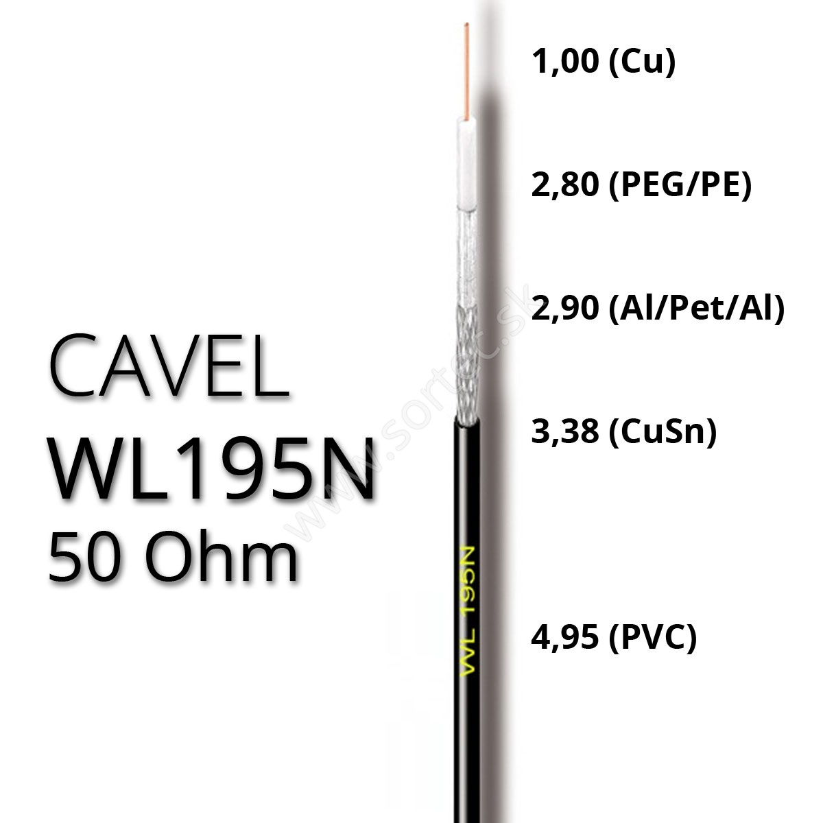 Koaxiálny kábel CAVEL WL195N 50 Ohm, 4,95mm, predaj na metre