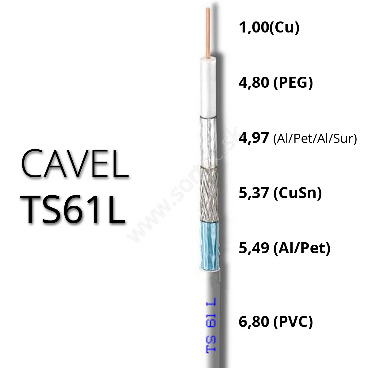 Koaxiálny kábel CAVEL TS61L(typ RG 6) je Triple Shield triedy Class A++.