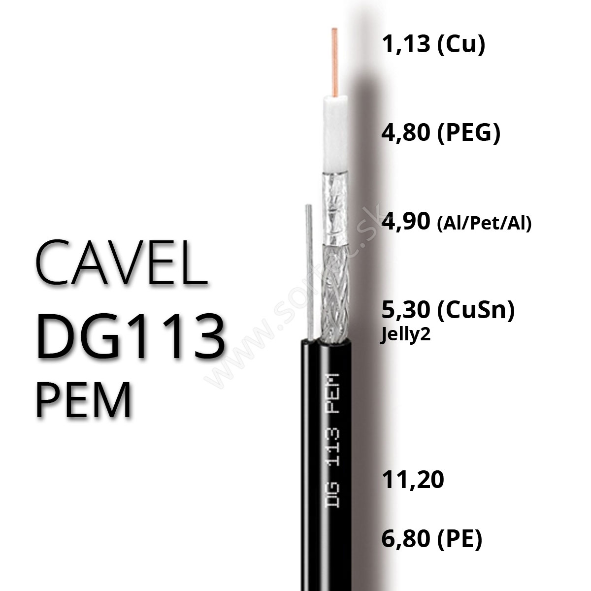 Koaxiálny kábel vonkajší závesný CAVEL DG113 PEM, 6,8mm, predaj na metre