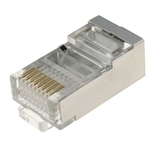Tienený krimpovací konektor RJ45 pre TP lanko. Transparentné prevedenie.