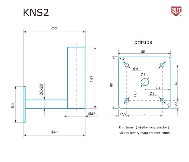 CSAT konzola KNS2 na stenu, stožiar alebo jakel
