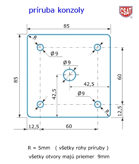 možnosť uchytenia konzoly na stožiar, trubku (priemer od 27 do 52 mm) alebo jakel, viď nižšie uvedené súvisiace produkty (nie sú súčasťou)