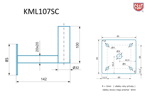 CSAT konzola KML107SC na stenu, stožiar alebo jakel