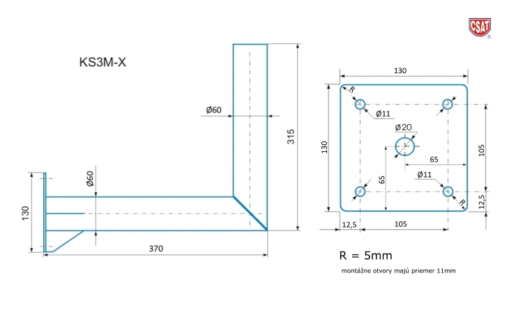 Platňová konzola * odstup 370mm * výška 315mm * priemer trubky 60mm