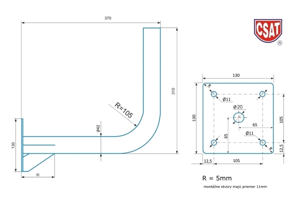 Platňová konzola * odstup 370mm * výška 310mm * priemer trubky 42mm