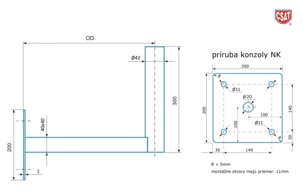 CSAT masívna profesionálna konzola NK400 pre náročné aplikácie, montáž na stenu