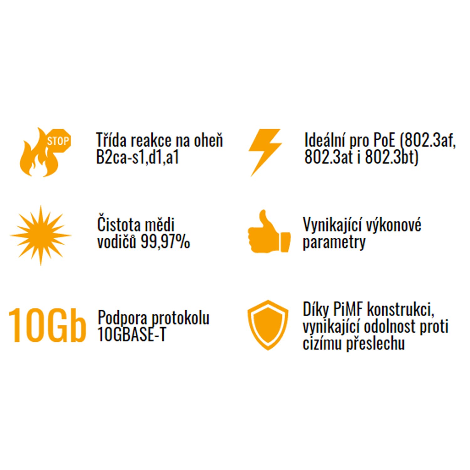 Veľmi kvalitný kábel Cat.6A s LSOH plášťom a triedou reakcie na oheň B2ca-s1, d1, a1, 500 m cievka.