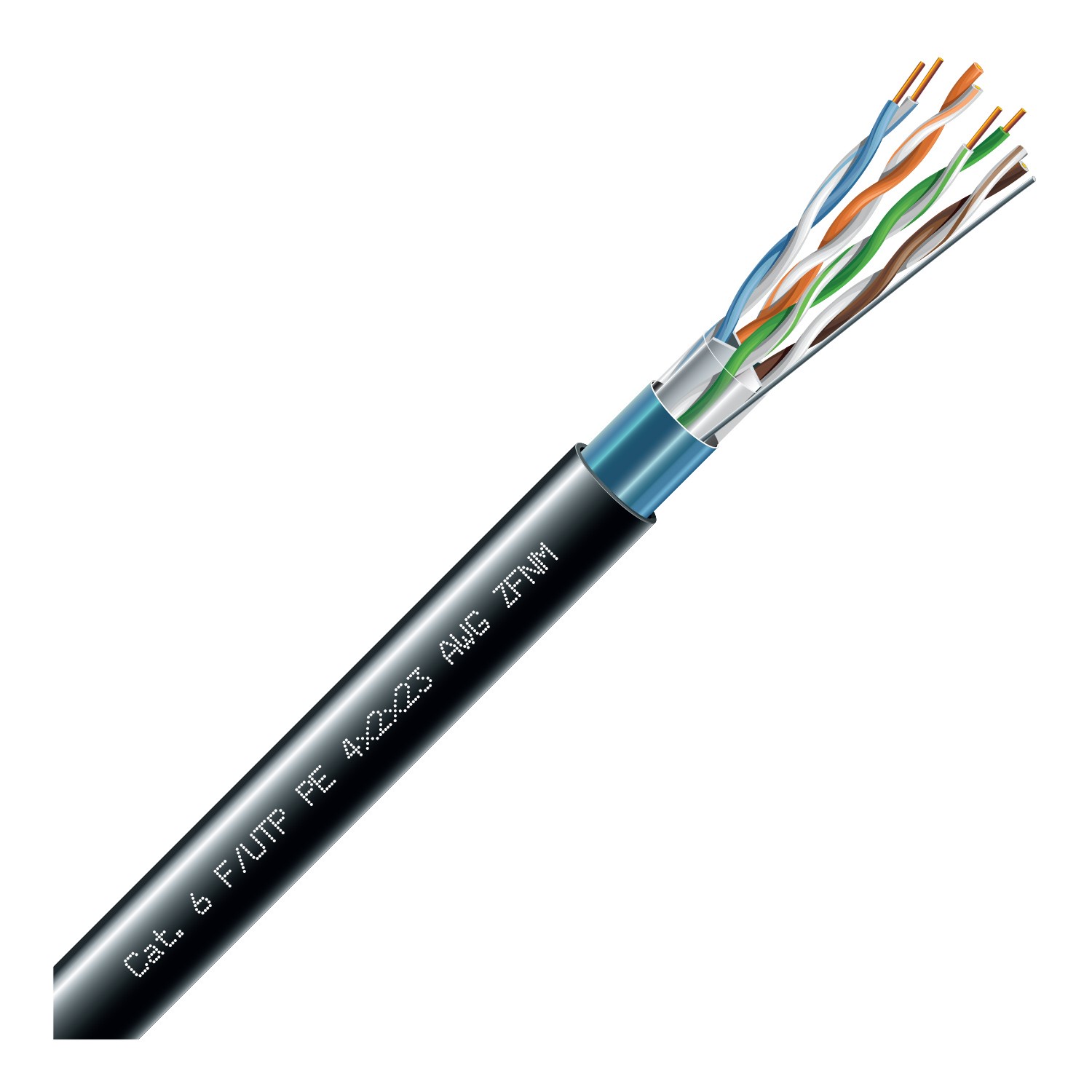 Kvalitný celomedený kábel Cat6 F/UTP s plášťom PE a triedou reakcie na oheň Fca, 305 m cievka,.
