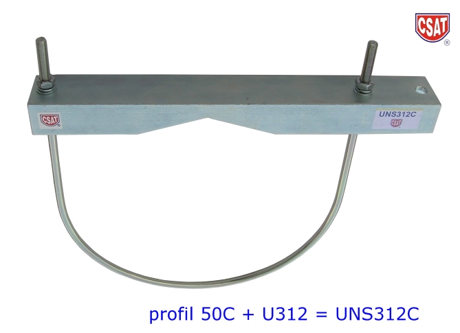 úchytka U312 spolu s profilom 50C je vhodná pre kotvenie káblov na stĺpy verejného osvetlenia (priemer od 250 do 300mm)