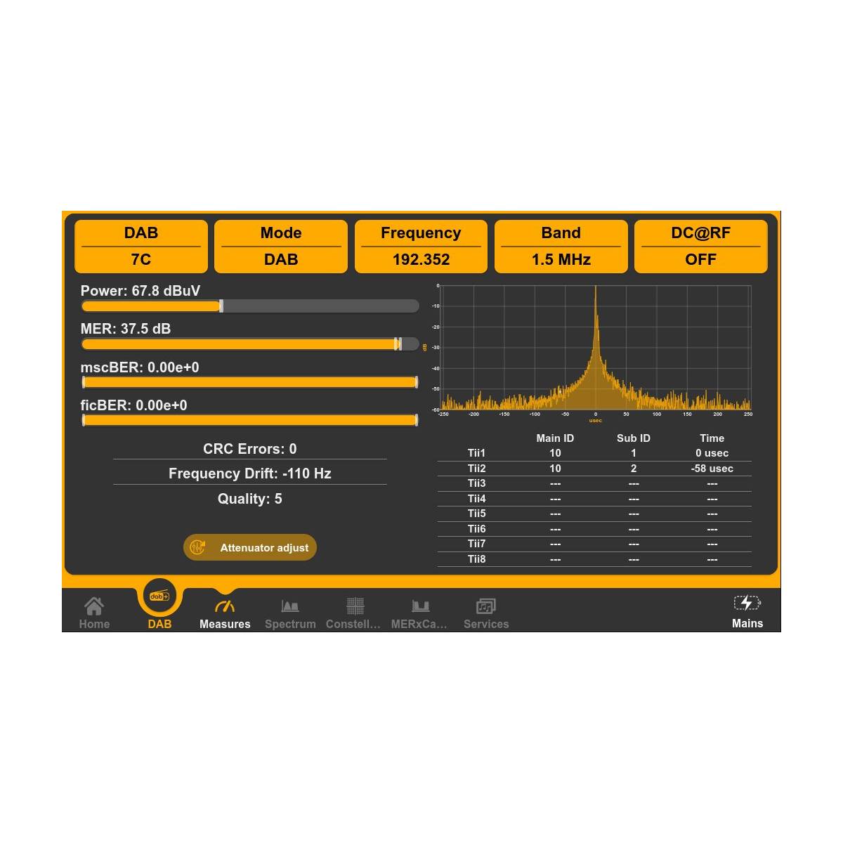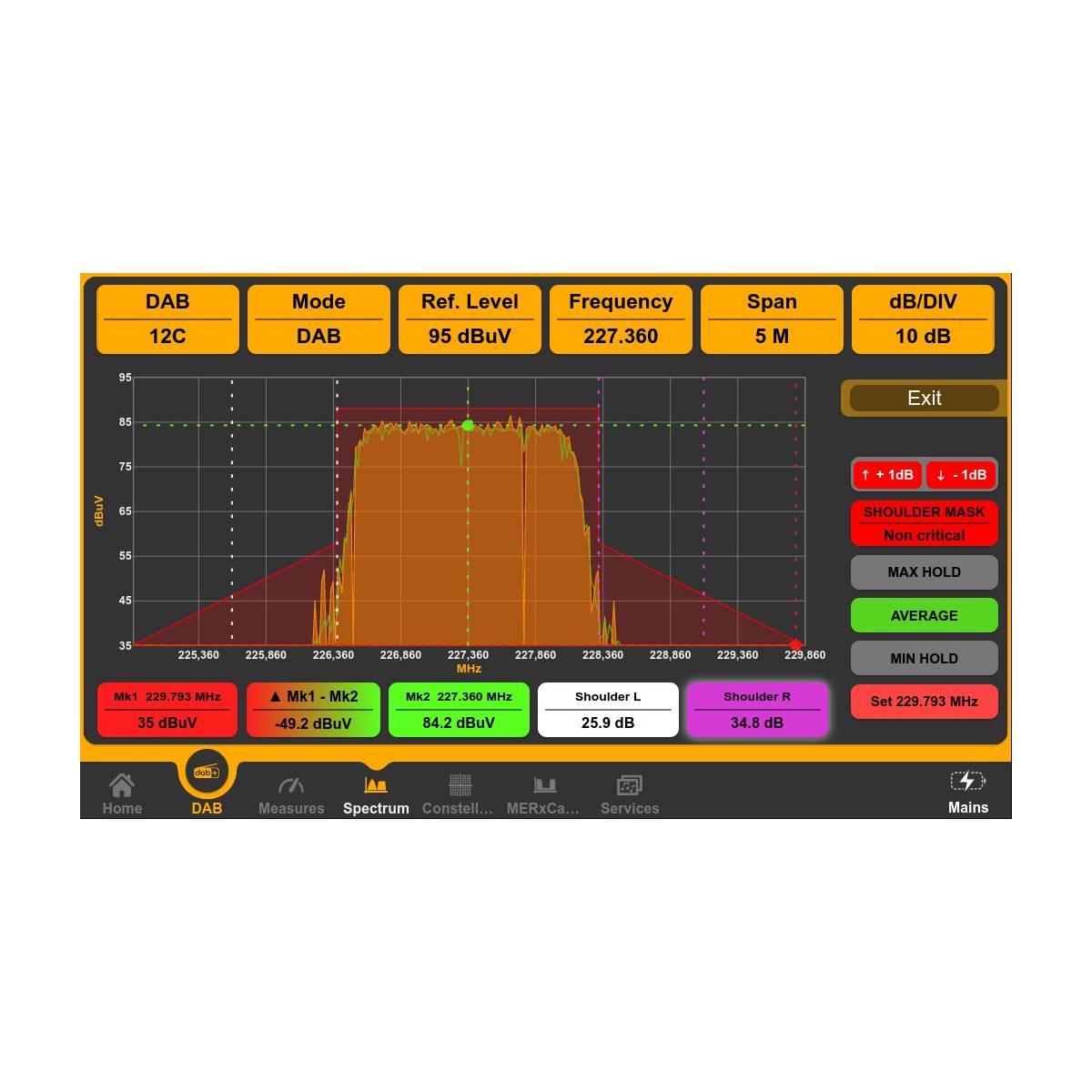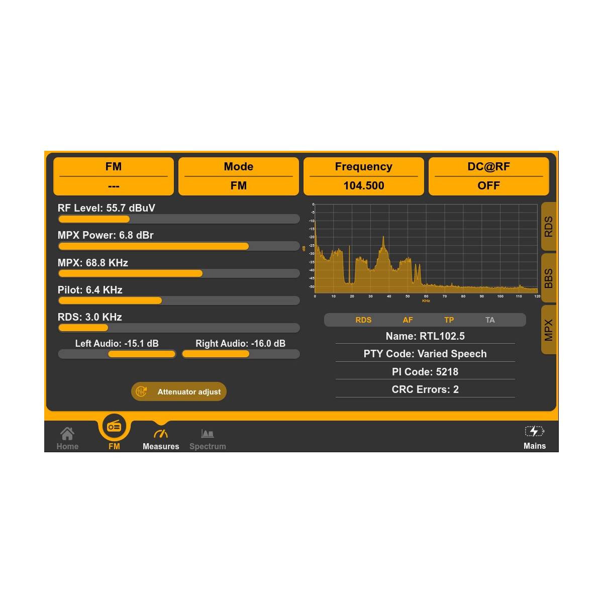 FM Rádio, DAB+, SAT, TV Spektrálny analyzátor: