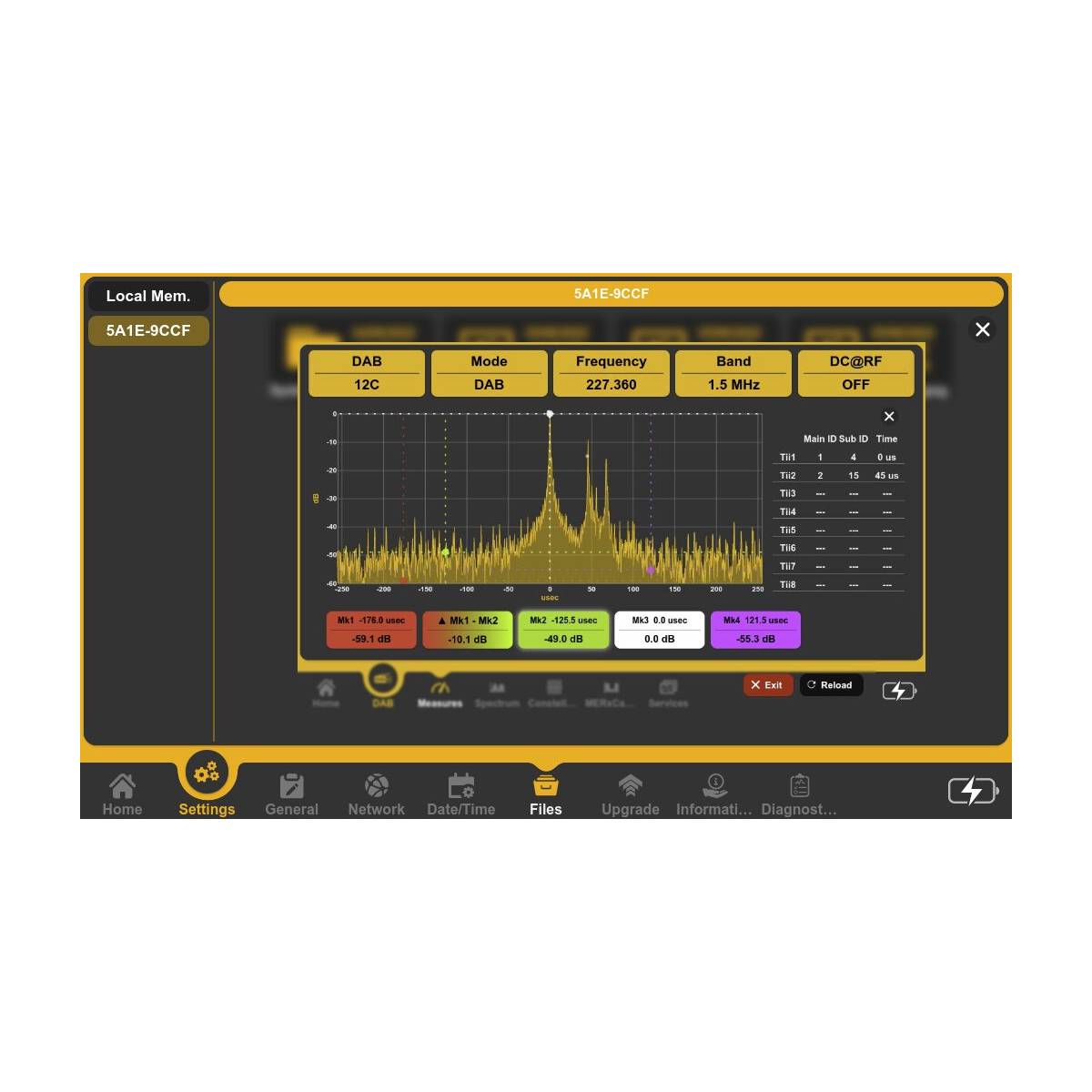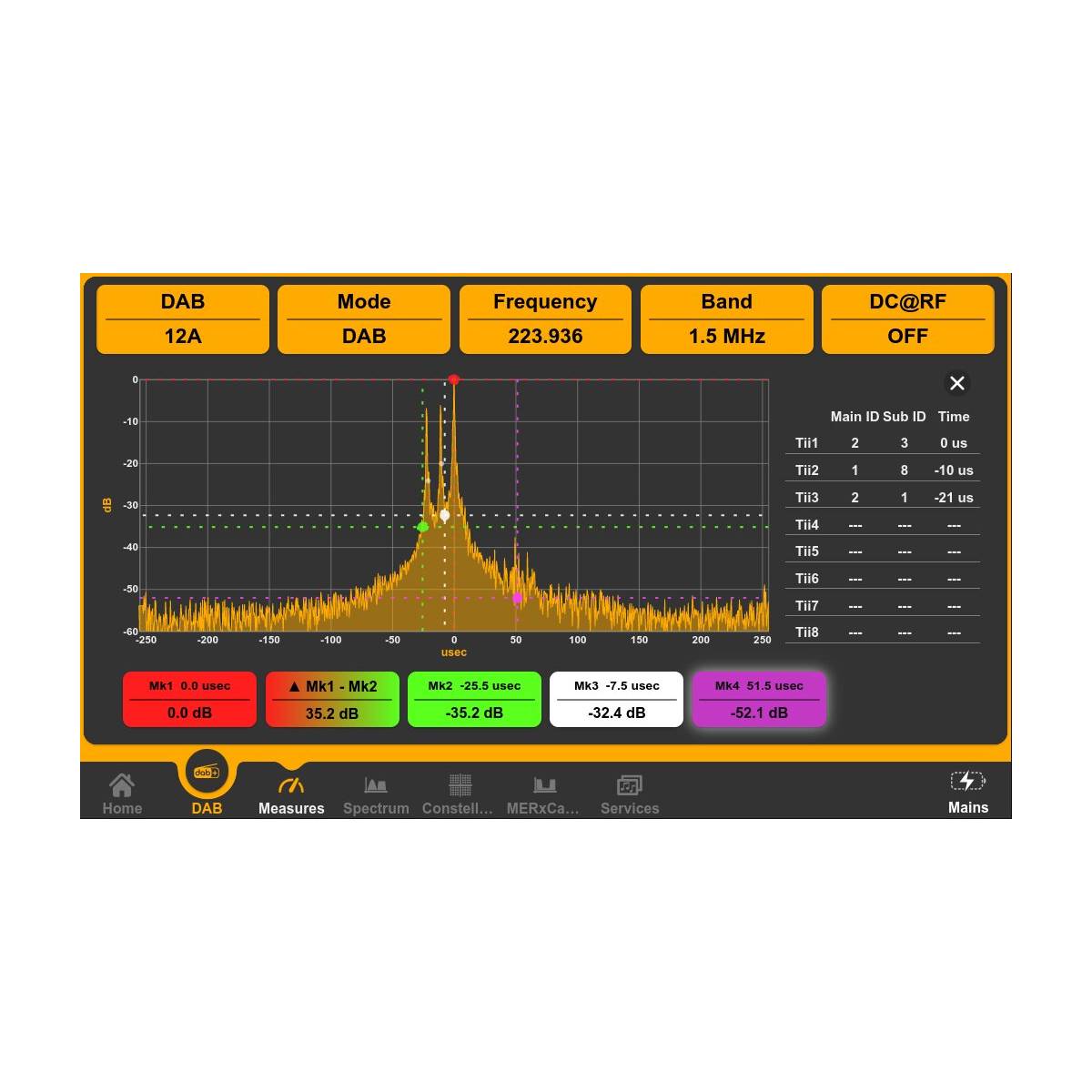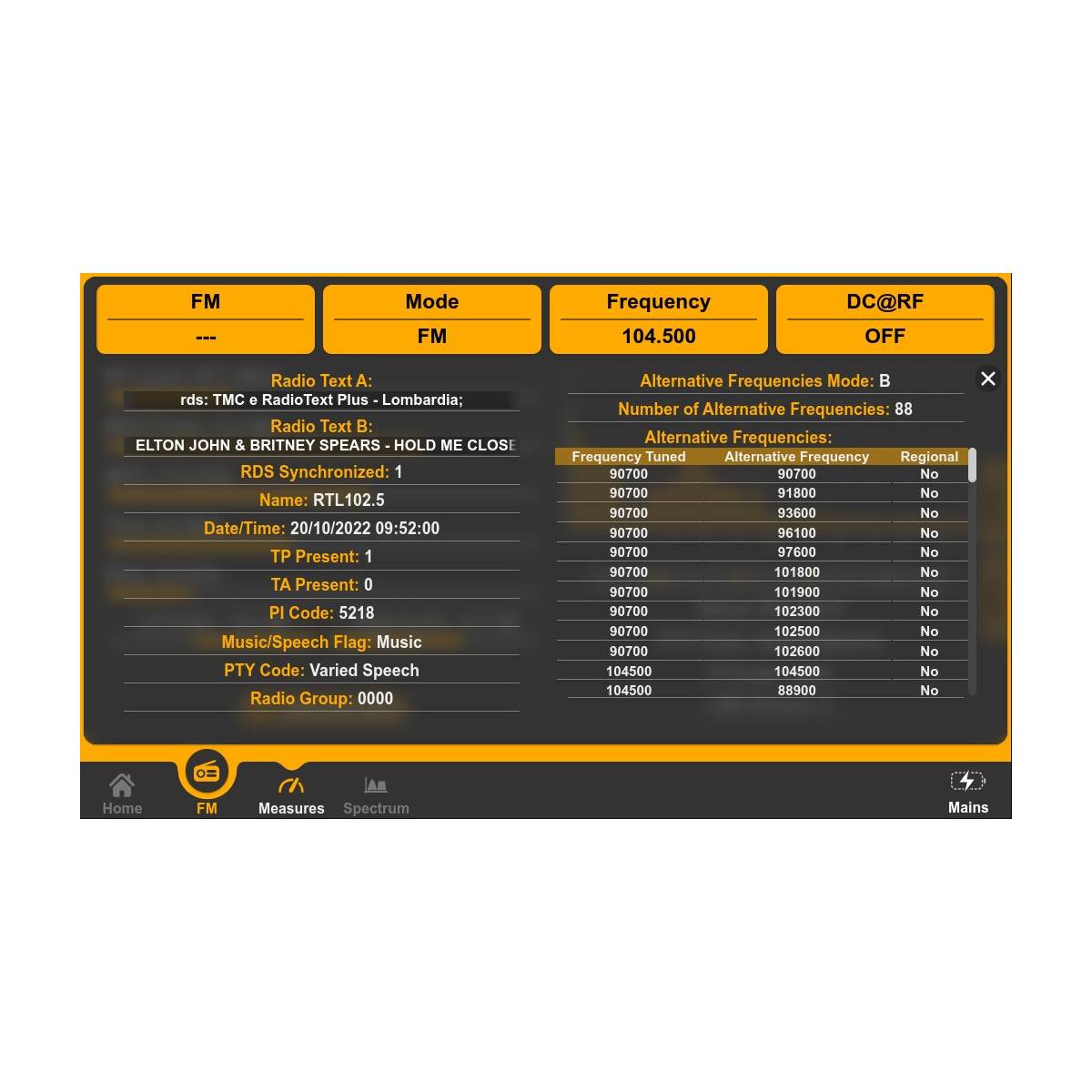 FM Rádio, DAB+, SAT, TV Spektrálny analyzátor: