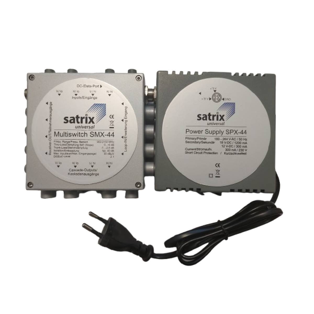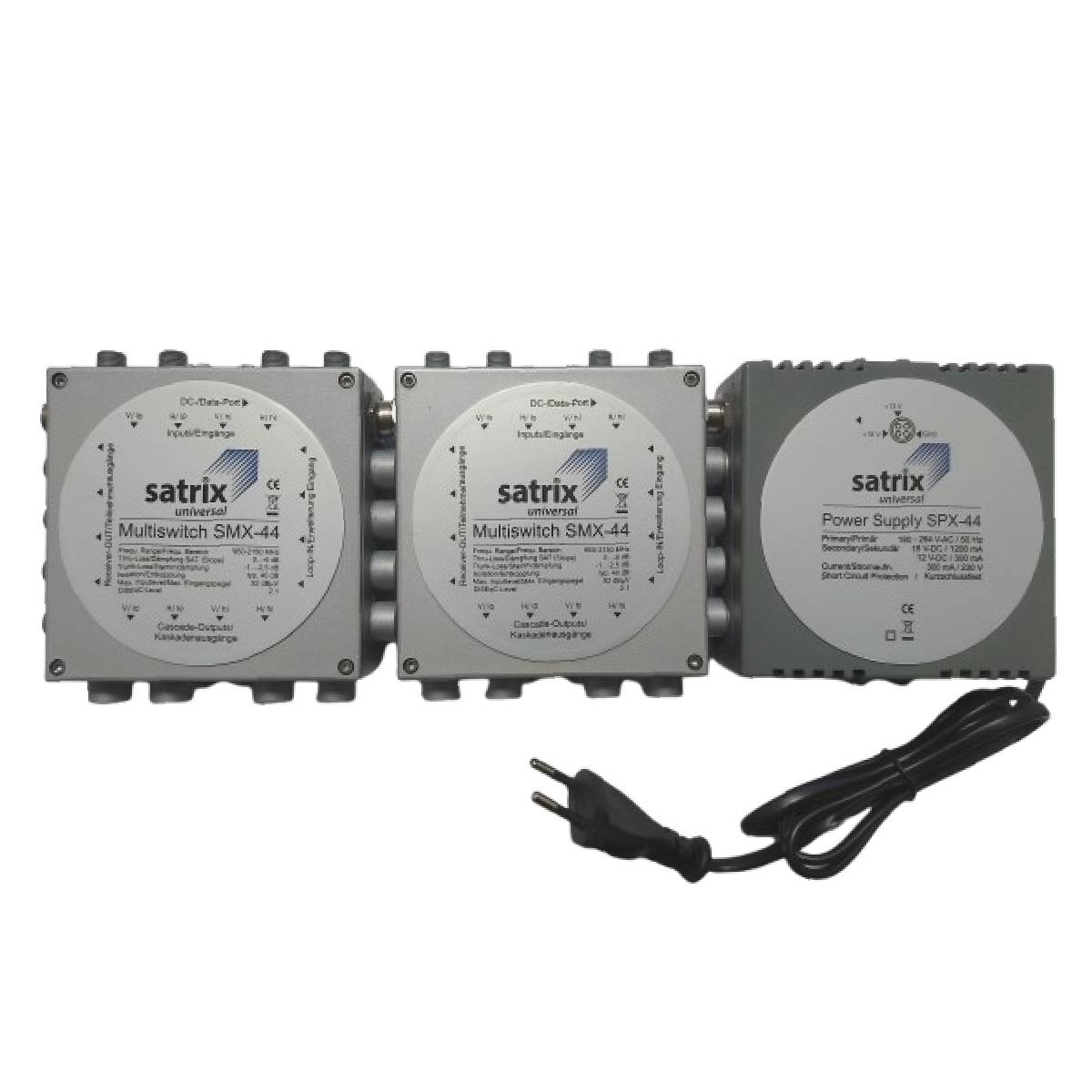 Napájací zdroj určený pre modulátny multiprepínač Satrixc SMX-44, výstupné napätie 18V/1200 mA a 12V/300 mA.