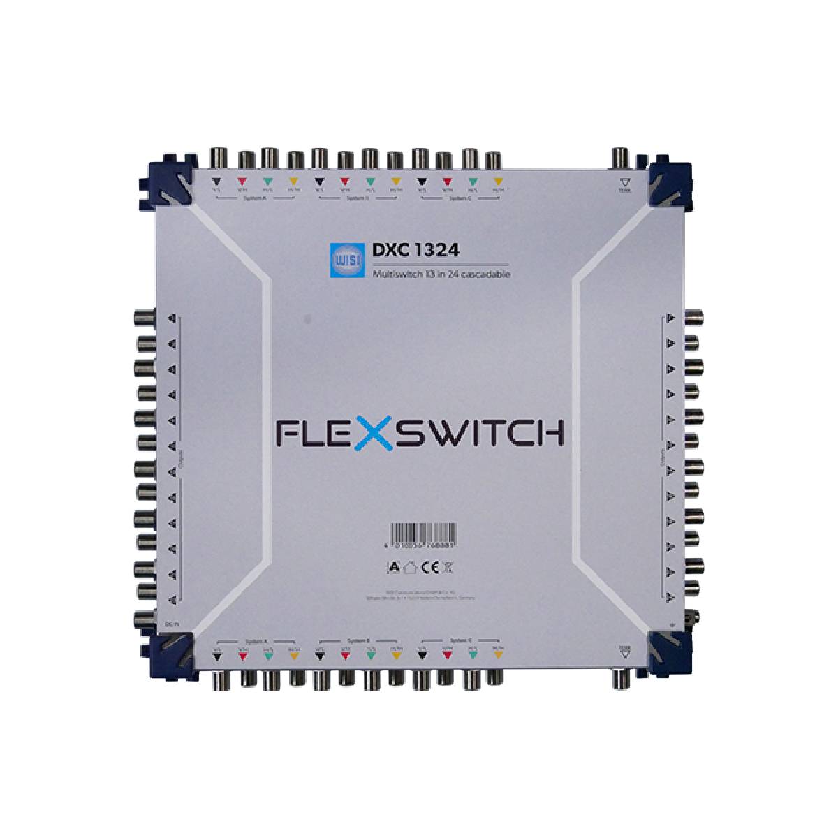 Multiprepínač WISI DXS 0512 je určený pre distribúciu signálov z 1 satelitnej pozície (4 polarizáciie) a 1 pozemnný signál DVB-T/T2, DAB a FM pre 12 účastníkov, integrovaný napájací zdroj.