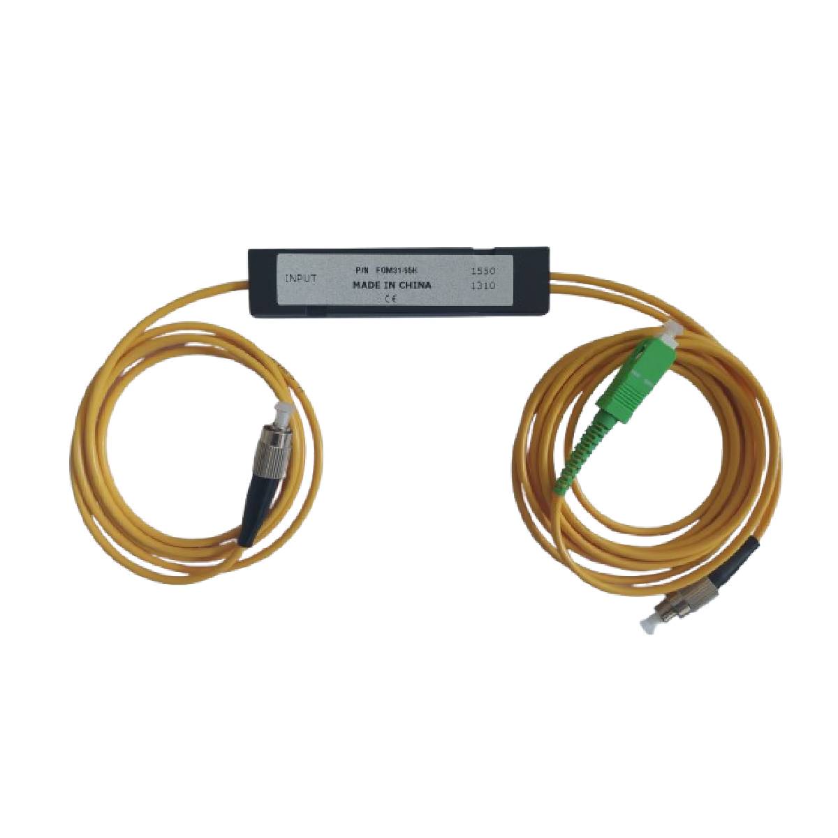 Optický rozbočovač/zlučovač jeden konektor FC/PC pre 1310nm a druhý konektor SC/APC pre 1550nm, ďalší konektor je FC/PC, útlm na výstupoch 0,09-0,16dB.