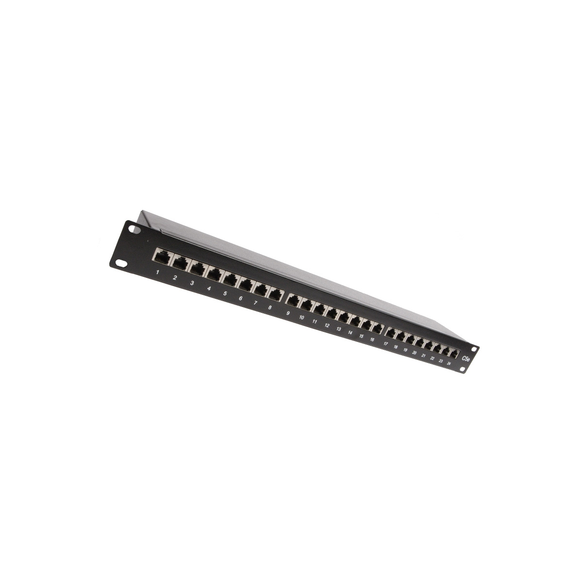 Tienené patch panely Solarix - kategórie 5E sú osadené moduly s duálnou IDC svorkovnicou 110 / Krone. Svorkovnica je z dôvodu ľahkého zakončenia kábla označená podľa štandardu T568A aj T568B, a to za pomoci farieb párov a číselného označenia jednotlivých vodičov priamo na doske plošných spojov (nepárne číslo označuje vždy polobarevný vodič a párne plne farebný). Súčasťou tela panelu je vyvazovacie lišta, ktorá slúži k prehľadnému usporiadaniu a pevnému uchyteniu dátového kábla a tiež uzemňovací vodič, ktorý spoľahlivo prepojí tienenie kabeláže sa uzemnením v rozvádzači. Tienené patch panely Solarix - kategórie 5E spĺňajú a tiež prevyšujú požiadavky na komponenty kategórie 5E / Class D definované v medzinárodných normách ANSI / TIA 568, ISO / IEC 11801 a EN 50173, vrátane všetkých najnovších dodatkov. Panely sú pevné, spoľahlivé a poskytujú dlhú životnosť. Štandardná farba patch panelu je čierna. Veľkosť v dátovom rozvádzači je 1U.