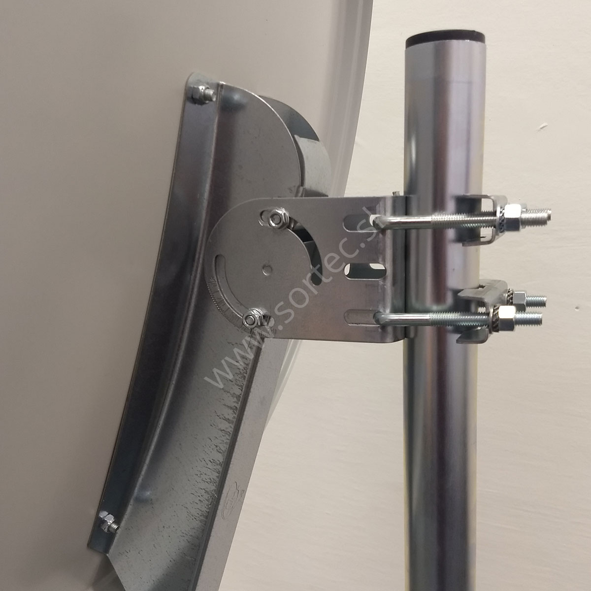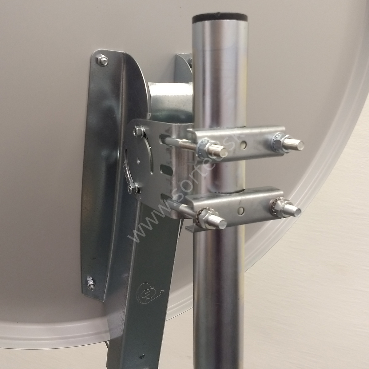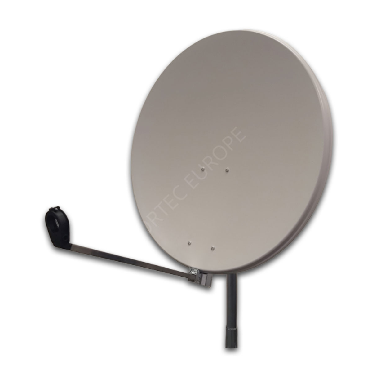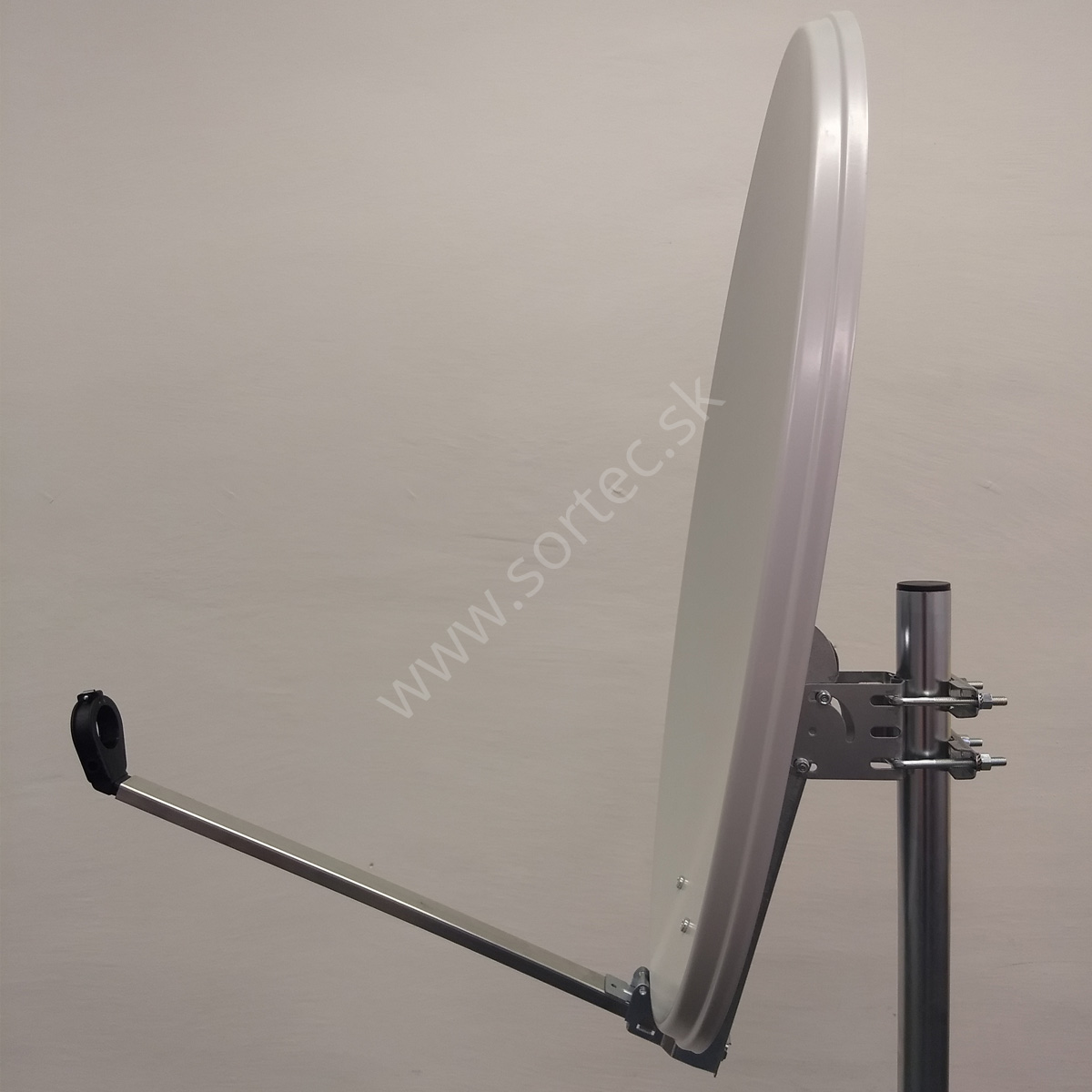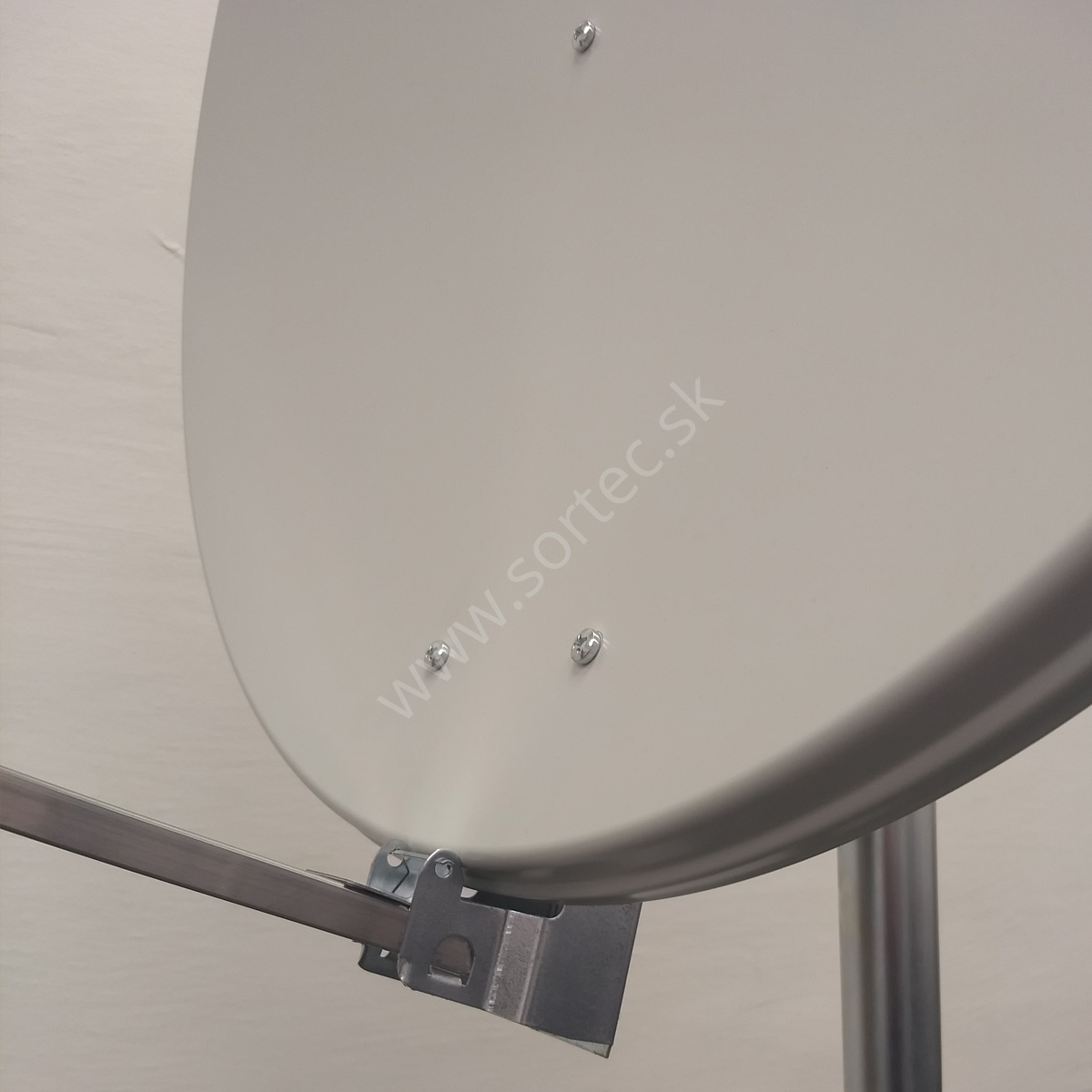 Kvalitná hliníková parabola s priemerom 80 cm v bielej farbe s celokovovým zadným úchytom a s dvomi úchytmi stožiarových objímok.
