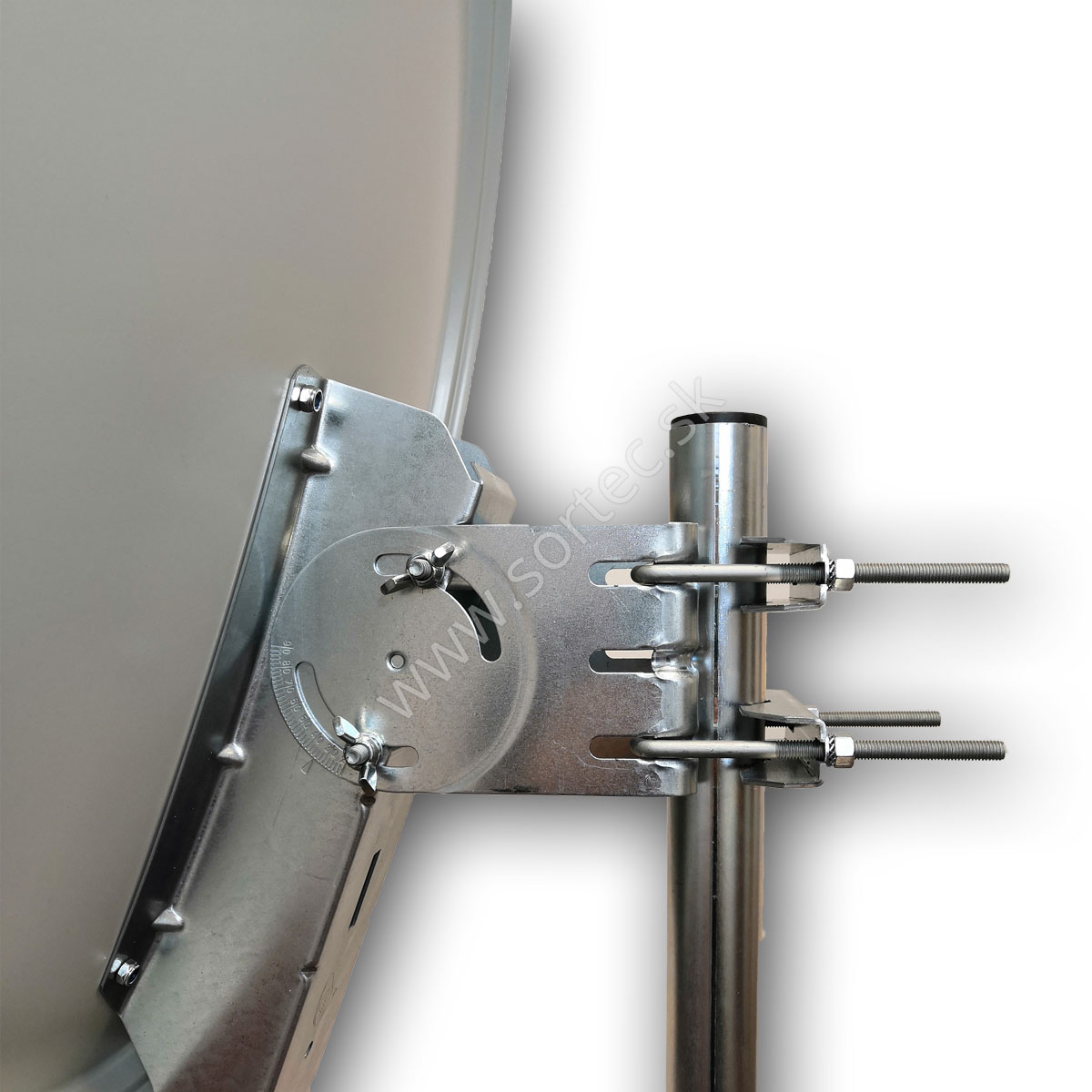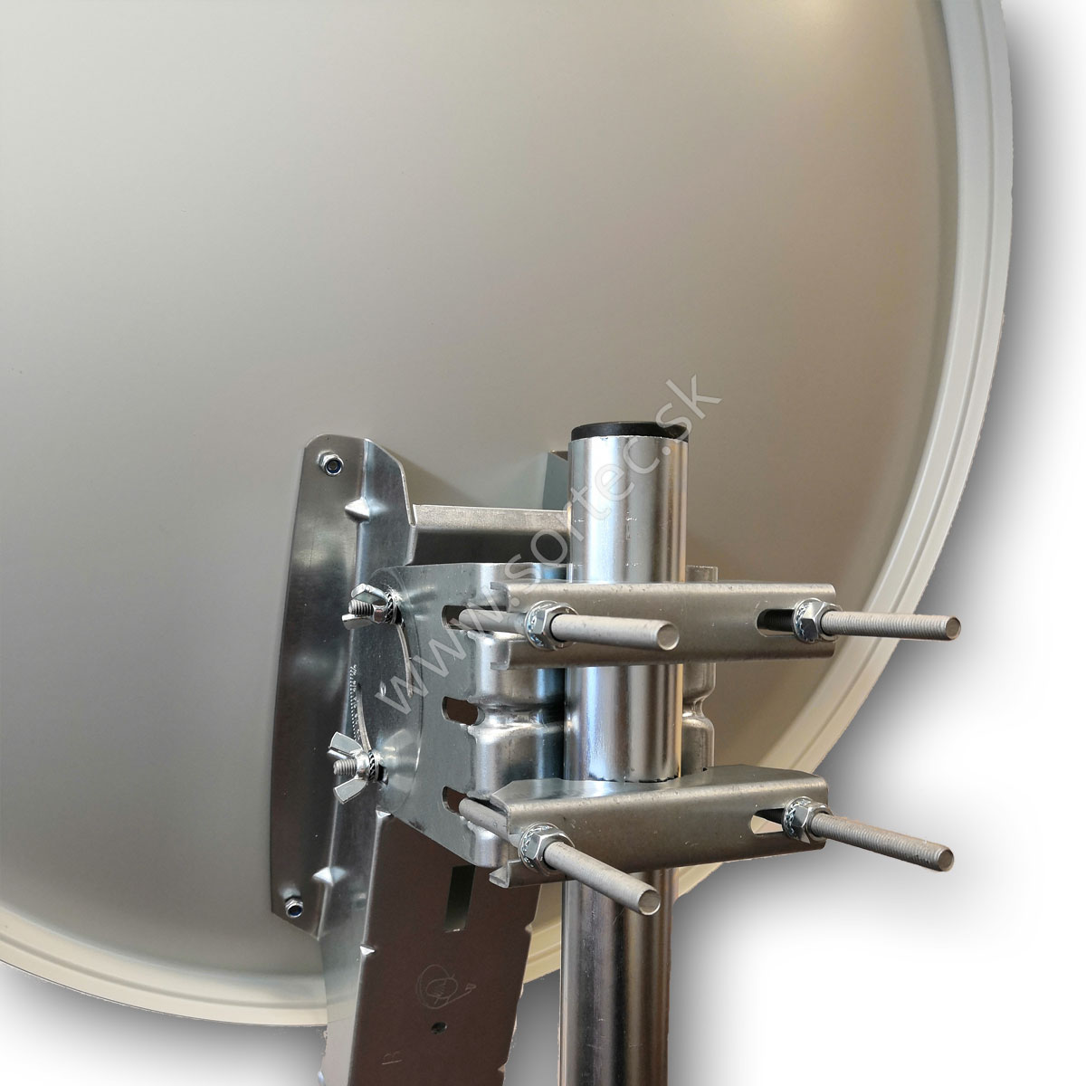 Najpredávanejšia modelová rada hliníkovej paraboly s priemerom 80 cm v bielej farbe a celokovovým zadným úchytom ešte vačším (ako OP 80E) pre vačšiu stabilitu, má taktiež dva úchyty stožiarových objímok.