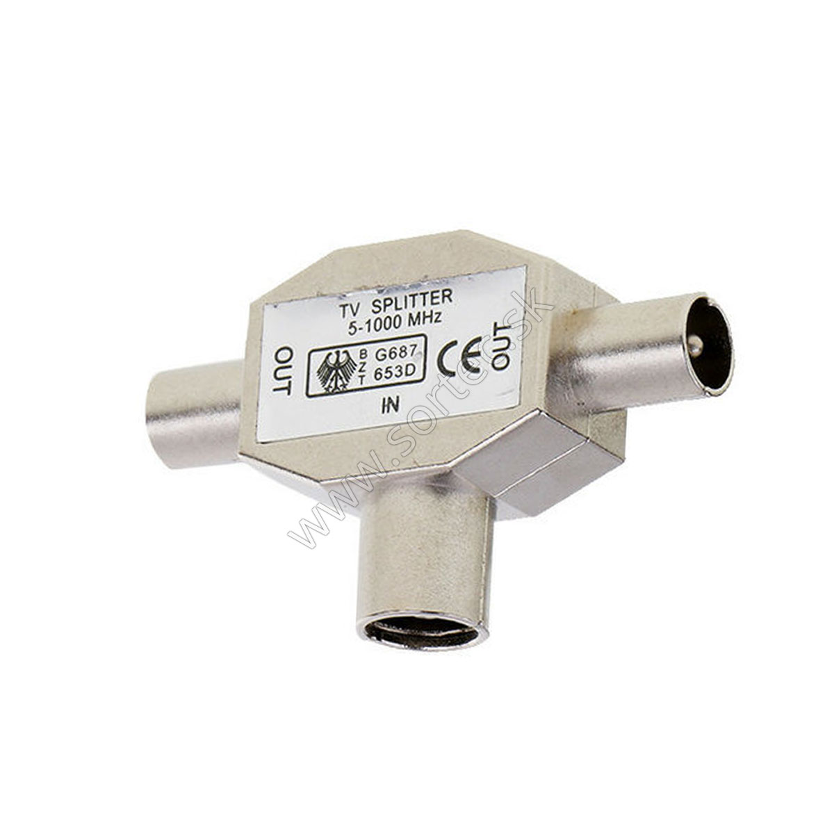 Anténny rozbočovač do dvoch smerov pre pásmo 5 - 1000MHz, vhodný napr. do TV zásuvky na rozbočenie na viac televizorov.