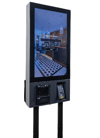 Súčasťou kiosku je dotyková obrazovka, ktorá je pre hosťa navigačným aj ovládacim nástrojom . Pri nečinnosti využiteľná ako reklamný a propagačný priestor v rámci šetriča obrazovky vo forme prezentácie alebo videa.