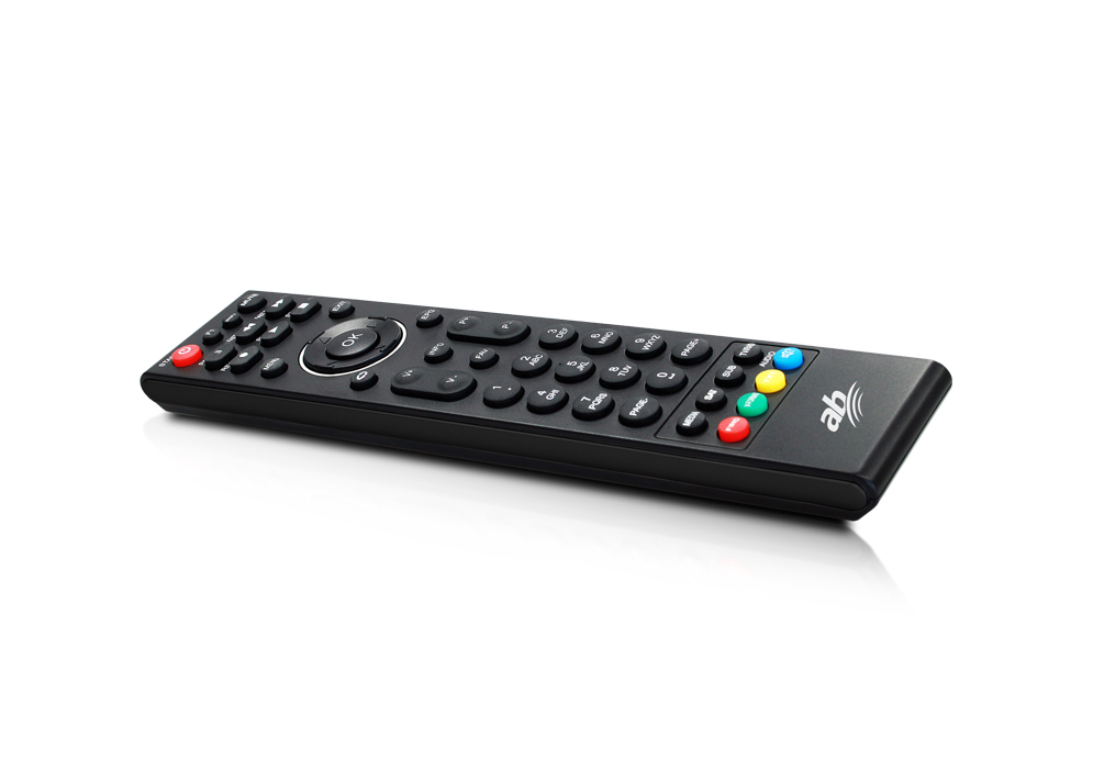 Programovateľný diaľkový ovládač pre prijímače AB CryptoBox rady 8XX/7XX/6XX/5XX/4XX/2T, TereBox 2T, PULSe 4K a PULSe 4K MINI, zároveň s týmto ovládačom môžete okrem prijímača zapnúť aj televízor a ovládať hlasitosť na Vašej TV.