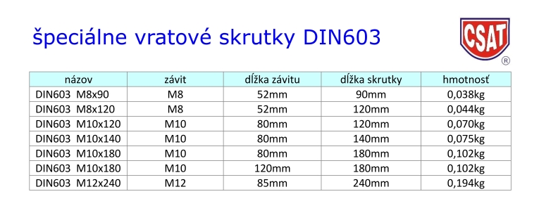 DIN603 M12x240 skrutka vratová s predĺženým závitom