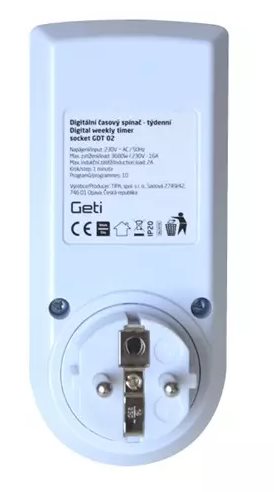 Spínacia zásuvka Geti GDT02 digitálna týždenná