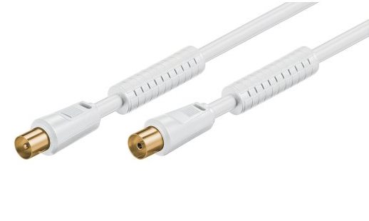 Kvalitná TV účastnícka šnúra s feritovými filtrami, 2,5m / IEC konektor(samec/samica)