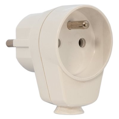 Vidlica so zásuvkou plastová biela, uhlová, 250V AC, 16A