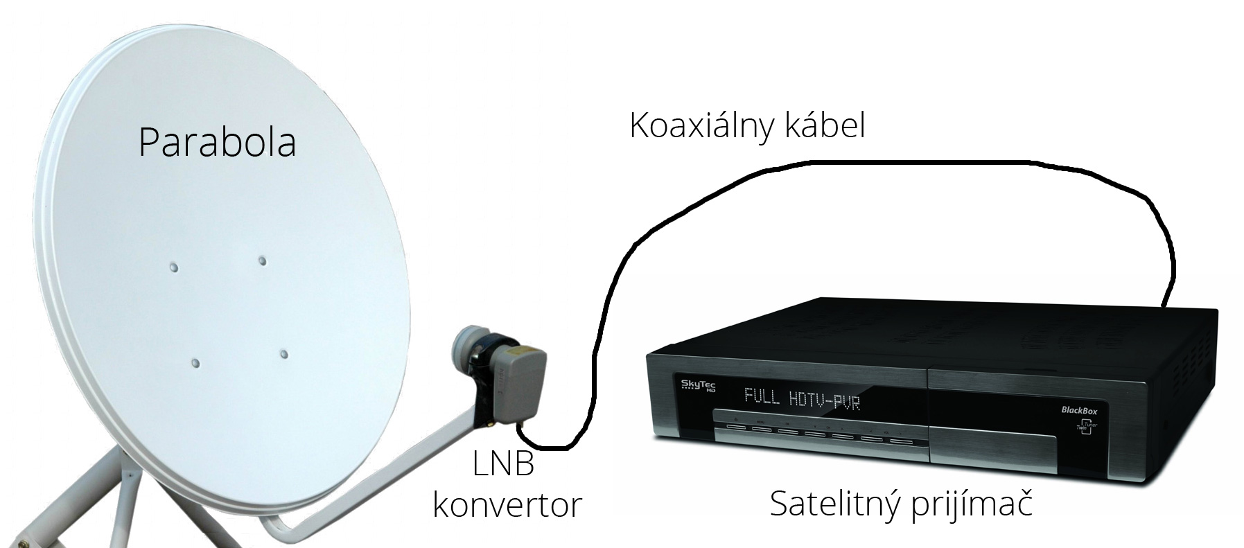 V súčasnosti je jednou z možností sledovania televízneho aj rádiového vysielania príjem pomocou satelitnej antény (tiež „parabola" alebo „satelit"). Satelitné vysielanie pochádza z geostacionárnych družíc (pohybujú sa zároveň s otáčaním Zeme a „visia" stále na rovnakom mieste), ktoré sa nachádzajú vo výške 36.000 km a sú rozmiestnené nad rovníkom. Z tohoto dôvodu musia byť parabolické antény („satelity") určené na príjem satelitných TV a rádio staníc nasmerované (z hľadiska geografickej polohy Slovenska) na južnú časť oblohy, v praxi približne tam, kde vidíme slnko o 12:00 h. (SEČ), pod uhlom 33° (a menej).