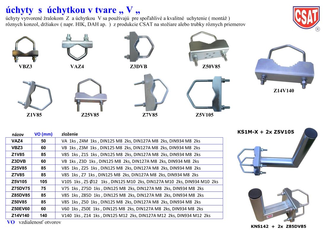 Univerzálny strmeň Z25V85 určený pre uchytenie konzol na stožiar alebo trubku s priemerom od 32mm do 75mm
