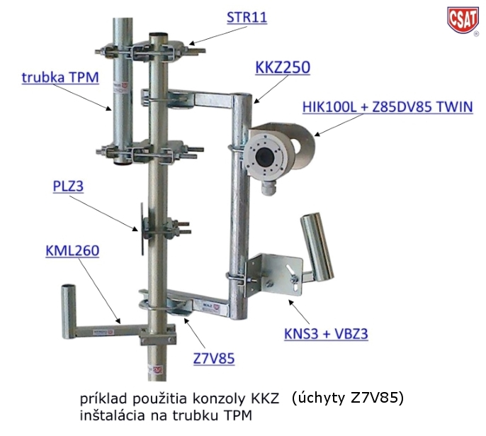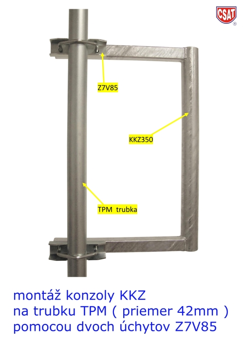 Univerzálny strmeň Z7V85 určený pre uchytenie konzol na stožiar alebo trubku s priemerom od 32mm do 70mm