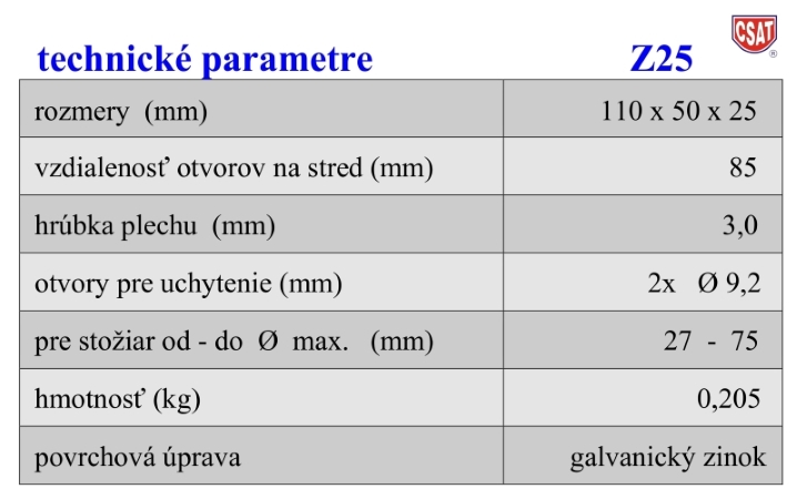 Rozteč dier 85mm * otvory 2x 10mm * pre trubku s priemerom 32-75mm